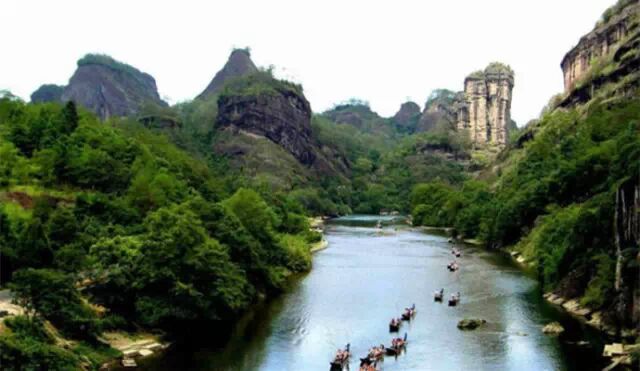 武夷山位于福建崇安縣。這里有武夷巖茶,武夷巖茶具有綠茶之清香,紅茶之甘醇,是中國烏龍茶中之極品。