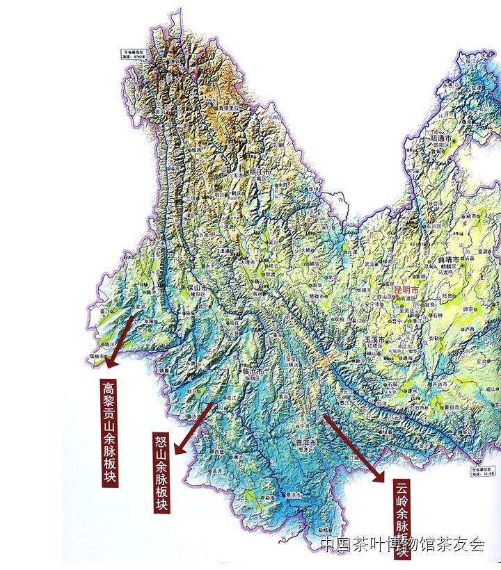 云南山頭茶的主體,在北緯25°以南的橫斷山區(qū)。橫斷山區(qū)高黎貢山、怒山、云嶺這三大山脈的南段(一般稱余脈),是云南山頭茶資源最集中分布的地區(qū)。這三大山脈的余脈基本上以怒江、瀾滄江、元江(紅河)為界,被分成“三大板塊”。
