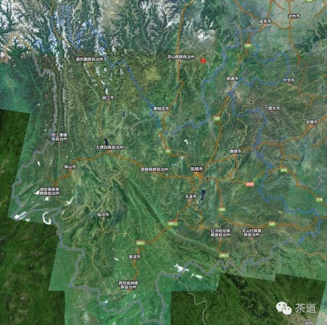 普洱茶四大產(chǎn)區(qū)(圖中綠色區(qū)域)