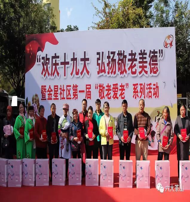 2017年10月28日,我國第五個法定“老年節(jié)”之際,六大茶山公司積極參加昆明市盤龍區(qū)金星社區(qū)“歡慶十九大,弘揚敬老美德”。