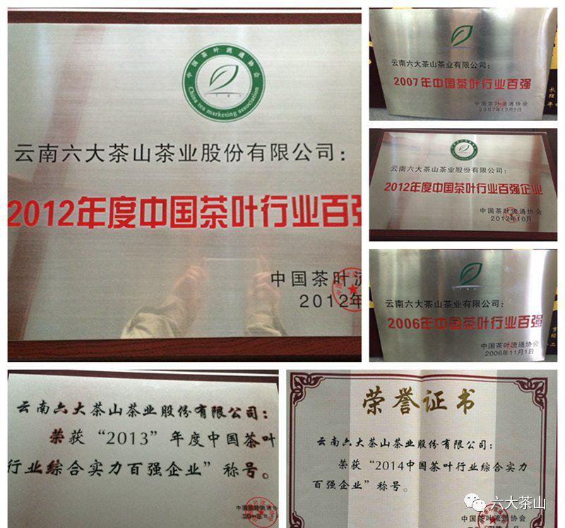 2014年10月,六大茶山公司再次入選“2014年中國茶葉行業(yè)百強企業(yè)”。自2006年至今,六大茶山公司已連續(xù)8年獲中國茶葉行業(yè)百強稱號。