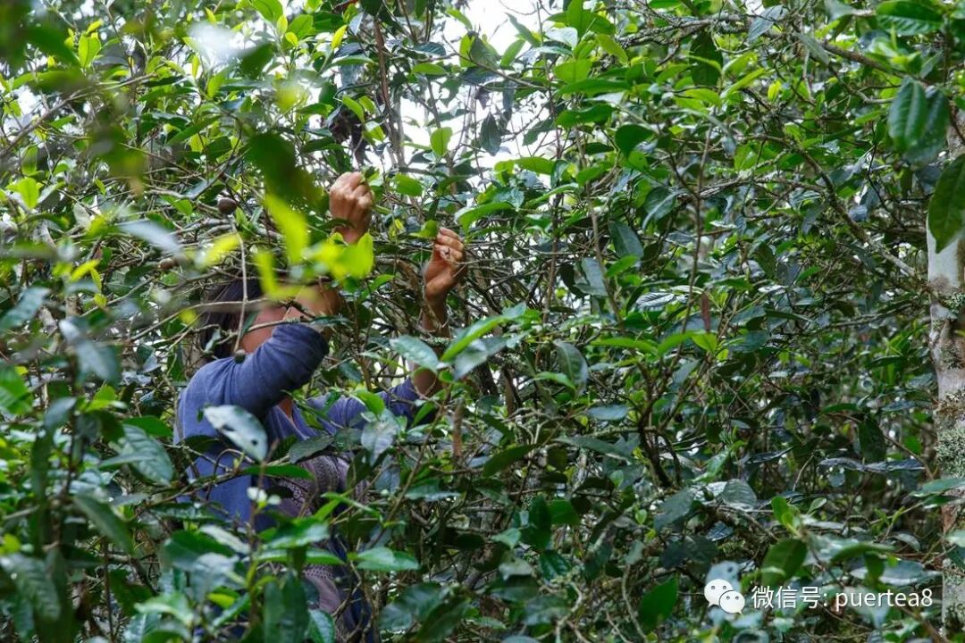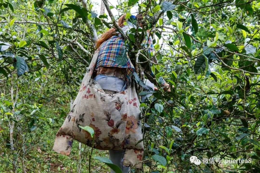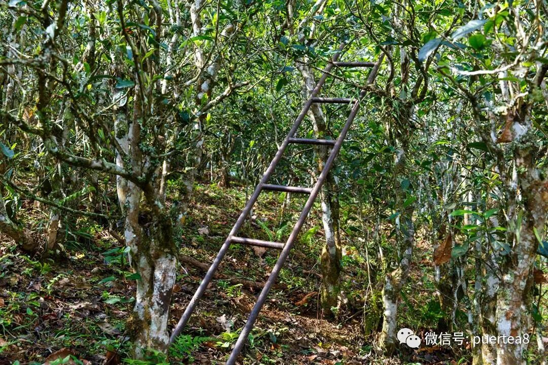 高山村的茶樹都很少經(jīng)過矮化,所以比較高大,很多都需搭架攀爬才可采摘。