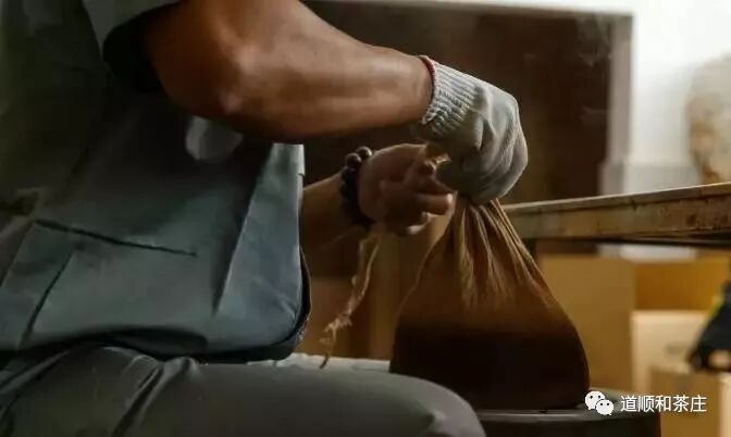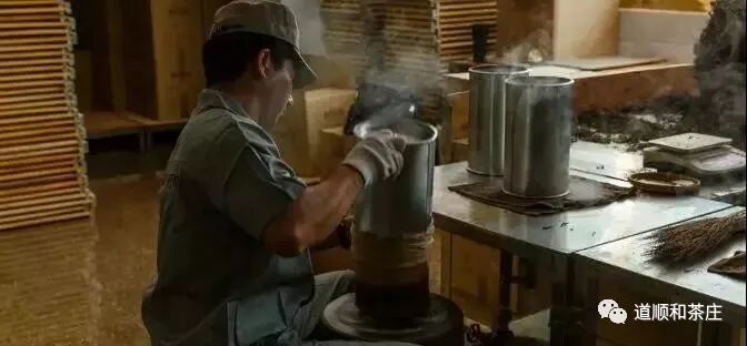 ??毛茶蒸軟,裝入干凈布袋,把茶揉緊,揉成圓餅。