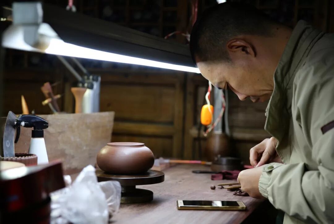 一個(gè)正值壯年的熟練藝人,制作中等難度的紫砂作品,一個(gè)月也就十幾把產(chǎn)量,更不要說(shuō)那些對(duì)藝術(shù)有所追求習(xí)慣挑戰(zhàn)難度實(shí)力派創(chuàng)作型高手,其作品數(shù)量更少但也尤為珍貴。