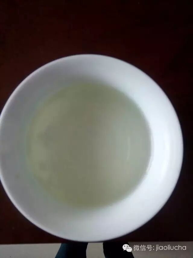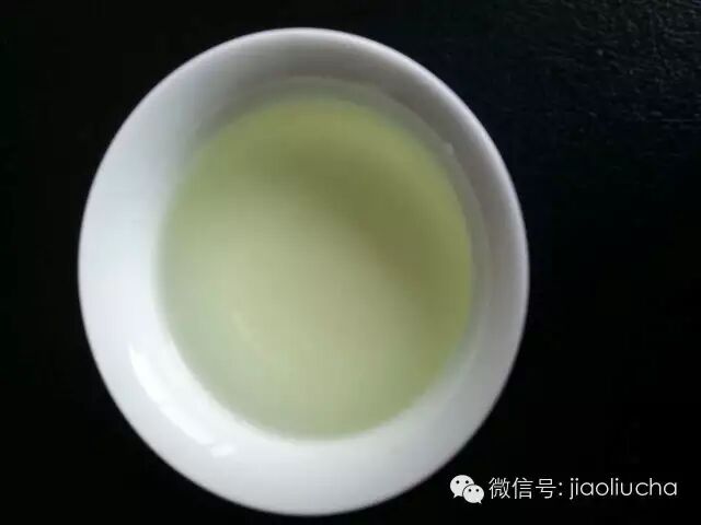 第五款:湯色嫩綠明亮,香氣嫩香帶有水悶氣。