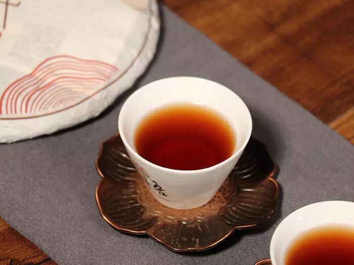 沖泡了三四泡之后的熟茶湯,喉嚨清爽滋潤,嘴巴不干不燥,咽下去之后整個肚子是溫暖舒適的,這就是熟茶的潤度的體現(xiàn)。