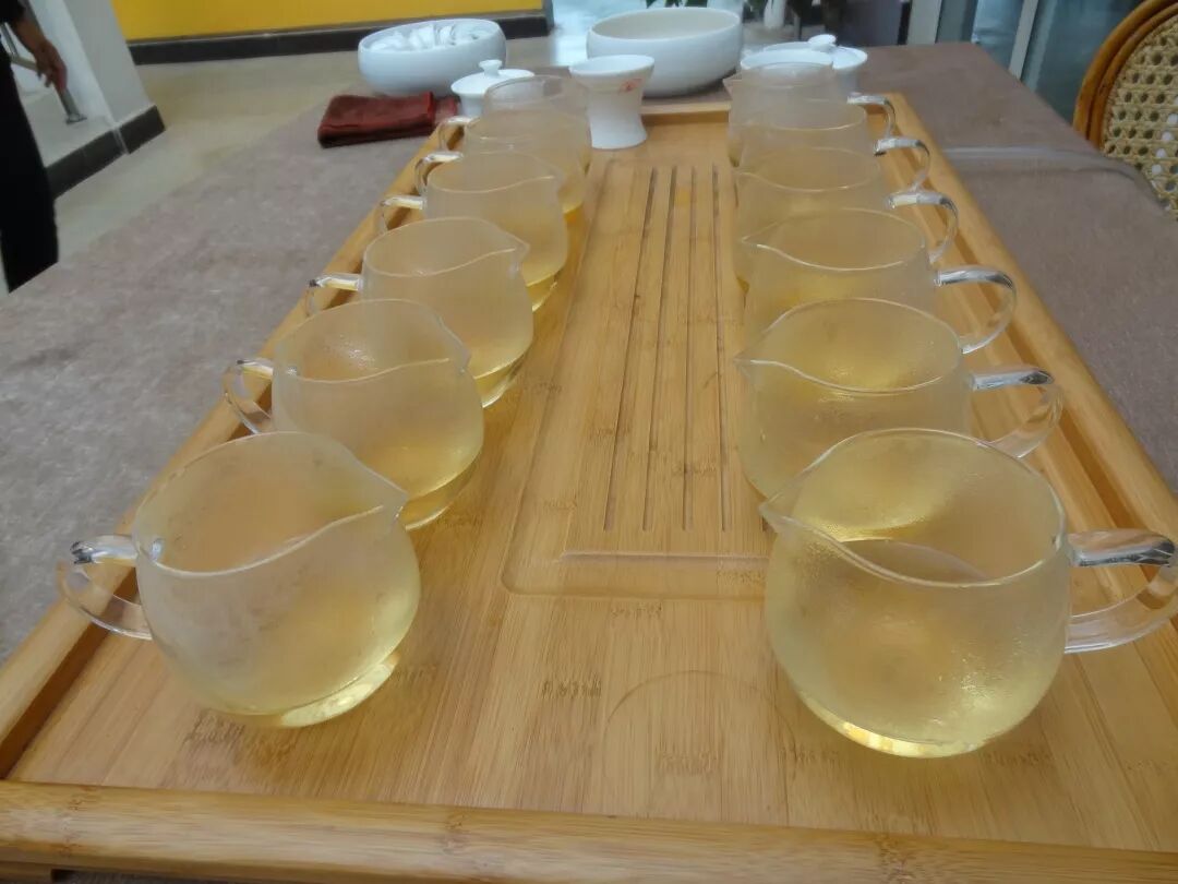 樣二湯色由五分鐘的金黃透亮轉(zhuǎn)變到第二次三分鐘的黃綠明亮,清香濃郁,茶湯厚重飽滿,苦澀顯但入口即化。