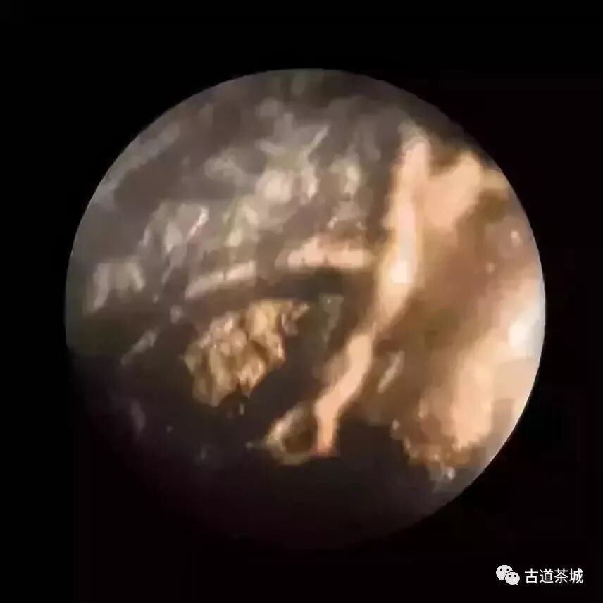黑茶用顯微鏡看并沒氣泡或者圓形的圖案,而是清一色的條紋狀,和木頭的紋路看起來很像。