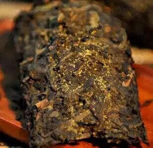 不同年代茯磚茶的“金花”色澤是不斷變化的:剛出烘的新茯磚茶,磚身內(nèi)生長大量的金黃色顆粒,形似“米蘭”。隨著陳放年代的延長,金花逐漸萎縮變白,有些年代久遠(yuǎn)的茯磚茶已看不到金花,只是隱約可見白色的斑點。因此,新茶“金花”茂盛而有些老茶“金花”較少甚至看不到。