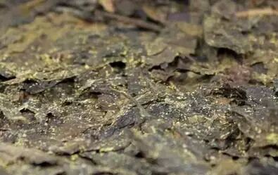 曲霉外觀也呈黃色片狀分布,在人為的作用下,也可以造成“金花”的樣子,常人難以分辨。最好的辦法就是從外形來看,霉菌是絲狀成片分布,呈黃色,通常分布在餅面一角,霉菌在14天至21天時面積就可達(dá)4cm至6cm,高約0.5cm~1cm,茶體本身霉變發(fā)黏,葉間界面不清楚,茶色深黑。霉變過又干燥存儲的茶,霉菌體干縮,形狀不規(guī)則,且色呈褐色。