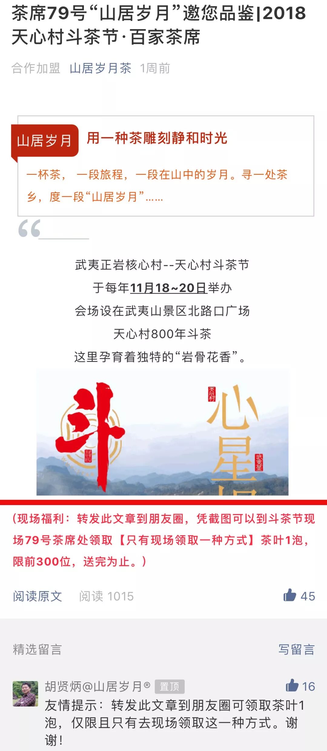79號茶席·山居歲月本屆斗茶節(jié)上,山居歲月團(tuán)隊(duì)精心準(zhǔn)備,在79號席位上,我們拿出了家里的好茶,迎接四海茶友。