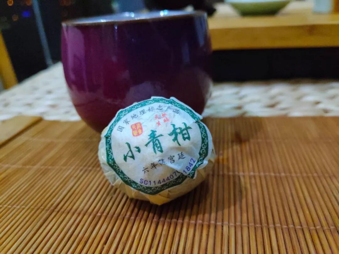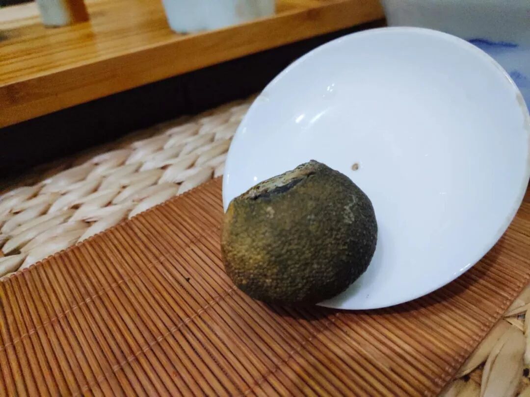 今日煮飲的小青柑是由廣東新會(huì)優(yōu)質(zhì)的茶枝柑及干倉(cāng)存放6年的云南普洱熟茶宮廷普洱陳茶,生曬而成。熟茶屬于重度發(fā)酵茶,加之存放時(shí)間較長(zhǎng),適合煮飲,別有一番風(fēng)味。