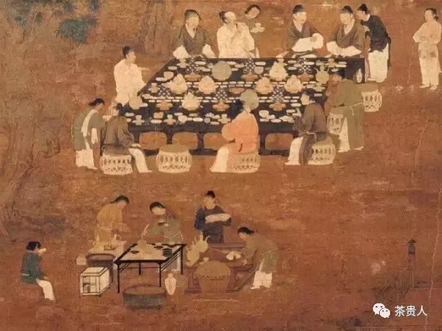 后人也把這幅畫(huà)稱(chēng)為“會(huì)茗圖”。會(huì)茗,就是茶會(huì)的意思,逼格就低了一大層。唐代的藝術(shù)家已經(jīng)有了共識(shí),茶是一種生活藝術(shù),不是主流價(jià)值觀。這種觀點(diǎn)在《宮樂(lè)圖》和《韓熙載夜宴圖》中都有明確的流露。真正的茶會(huì)不會(huì)把“茶”推到第一個(gè)位置,甚至名字都不帶“茶”字?;蛘叻催^(guò)來(lái)說(shuō),凡是把“茶”推到第一的茶會(huì),都有賣(mài)茶的嫌疑。