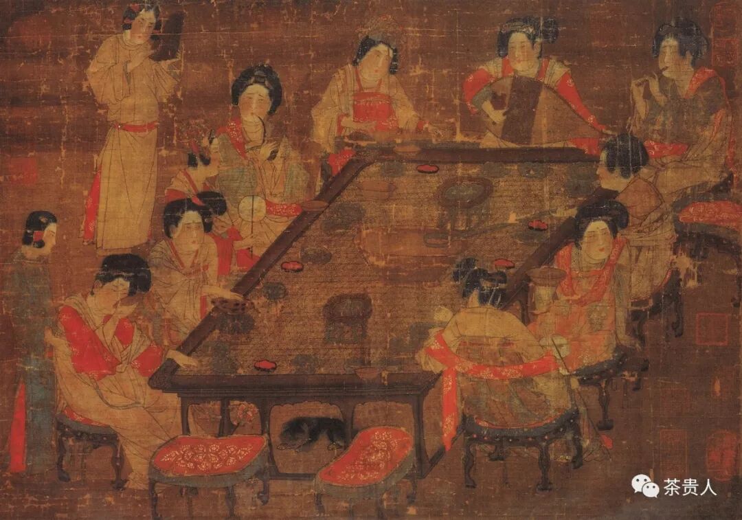 唐代畫(huà)作《宮樂(lè)圖》是對(duì)這首詩(shī)的最佳解讀。唐朝宮廷畫(huà)《宮樂(lè)圖》是典型的庵茶法,茶末事先置入細(xì)瓶或其他容器,然后注入沸水,再分湯飲之。