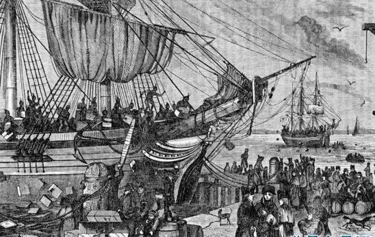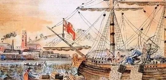 當北美被殖民者不滿英國,因而當地居民塞繆爾·亞當斯率領60名自由之子化妝成印第安人潛入商船,把船上價值約1.5萬英鎊的342箱(約為18,000磅)茶葉全部倒入大海,來對抗英國國會,最終引起著名的美國獨立戰(zhàn)爭。