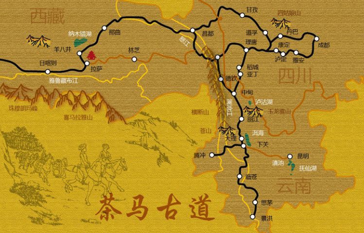 另一條?從云南普洱茶原產(chǎn)地(今西雙版納、思茅等地)出發(fā),經(jīng)大理、麗江、中甸(今香格里拉縣)、德欽,到西藏邦達(dá)、察隅或昌都、洛隆、工布江達(dá)到拉薩,然后再經(jīng)江孜、亞?wèn)|,分別到緬甸、尼泊爾、印度,國(guó)內(nèi)路線全長(zhǎng)3800多公里。