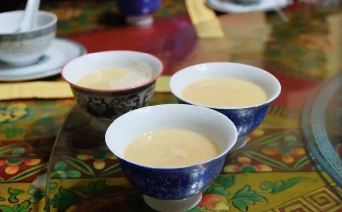 人們在飲茶實踐中,逐漸發(fā)現(xiàn)吃了油膩肉食后喝杯濃茶,腸胃特別舒服。同時文成公主想到京城一帶有用蔥、姜、芝麻、炒米等佐料泡茶吃的,于是試著在煮茶時加入些酥油和松子仁,吃起來很香,如果不加糖,而加些許珍貴的鹽巴,咸滋滋、香噴噴,其味更佳。文成公主逢年過節(jié),就親自制作這種酥油茶賞賜大臣,于是“酥油茶”就逐漸成為藏族賞賜、敬客的最隆重禮節(jié),直至今日,客來敬酥油茶,仍是藏胞的一種獨特風(fēng)尚。