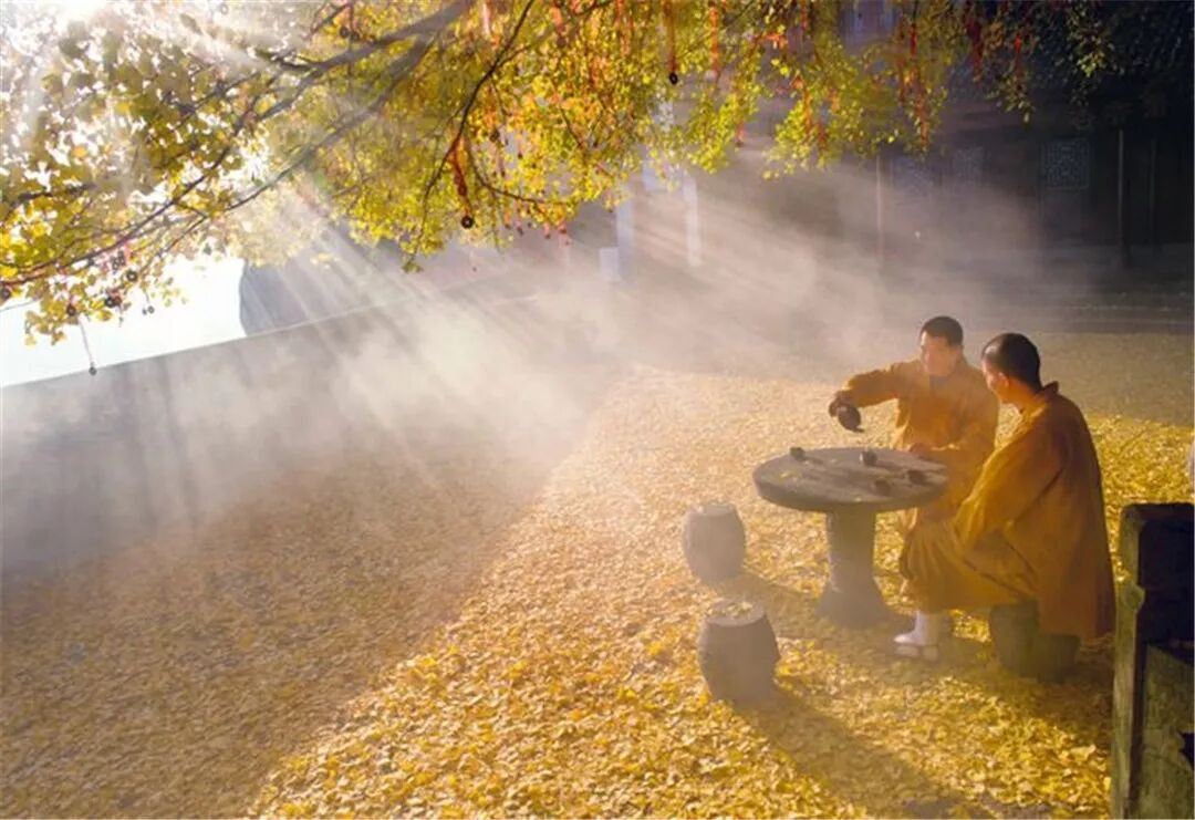 方丈看他衣著簡(jiǎn)單、相貌平常,就把他當(dāng)作一般的客人對(duì)待,非常冷淡隨意的說(shuō)了聲“坐”,又對(duì)小和尚說(shuō):“茶”。