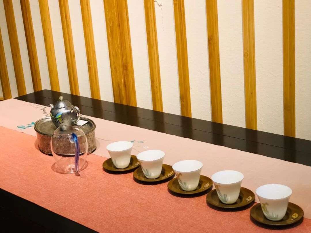 茶席上的茶杯,在開局時,排列緊湊整齊,既是形式美的需要,也便于席主就近分茶,品茶開始后,可以根據客人的需要適當的分開一些距離,體現著席主對客人的貼心和關懷,作為客人,也應當自覺的去維護茶席的形式之美,細節(jié)雖小,卻體現著茶人的修養(yǎng)和彼此的關心與體諒。