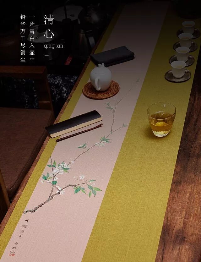 茶席,是一個由長、寬、高與時間構成的四個維度空間,舒適雅致的茶席,是一個充滿詩意和畫意的空間,在這個空間里,有春花秋葉的痕跡,有光陰悠忽的來去,豐富著空間的層次。