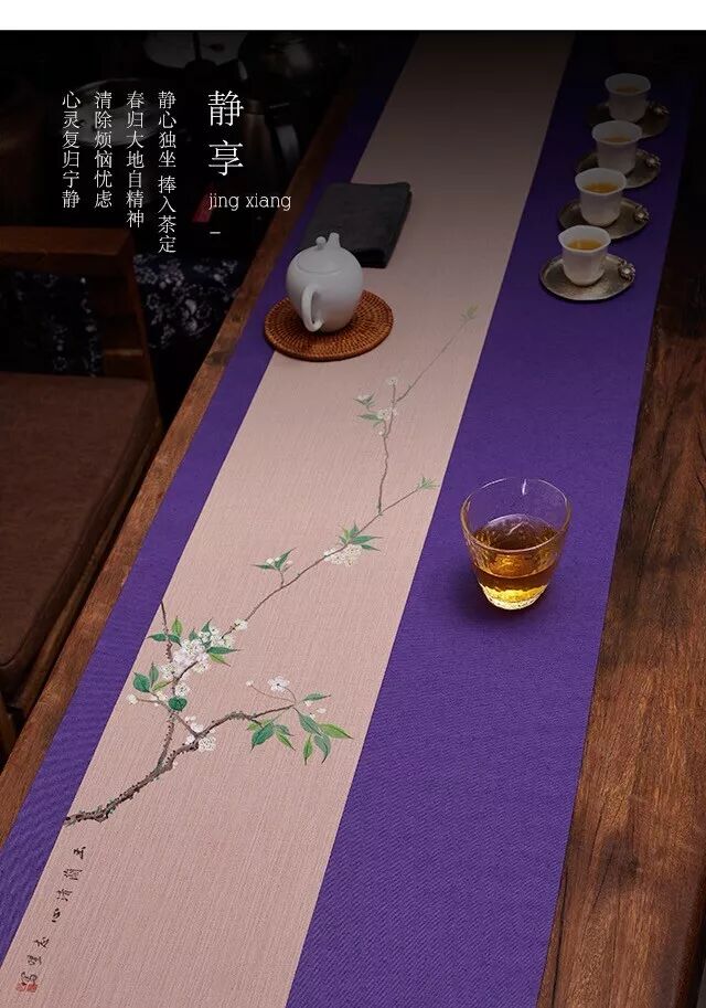 茶席布置需動靜結合、疏密有致、顧盼呼應、知白守黑,茶席構成的不變性,除了泡茶區(qū)和品茗區(qū)的相對不變外,其他的茶器可在茶席上隨意安置,要復指導的原則,首先是不影響泡茶和分茶的便利性;其次,安放位置要協(xié)調適宜,符合陰陽和合,是茶席錦上添花,更有畫面感。