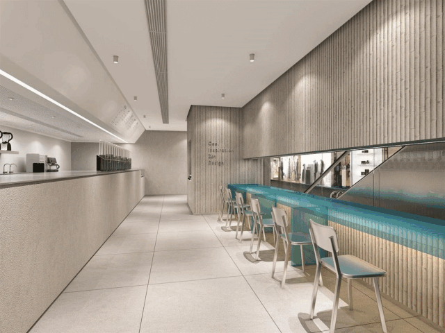通過(guò)選擇天然石材、竹紋纖維去呈現(xiàn)門(mén)店內(nèi)富有設(shè)計(jì)感的細(xì)節(jié);