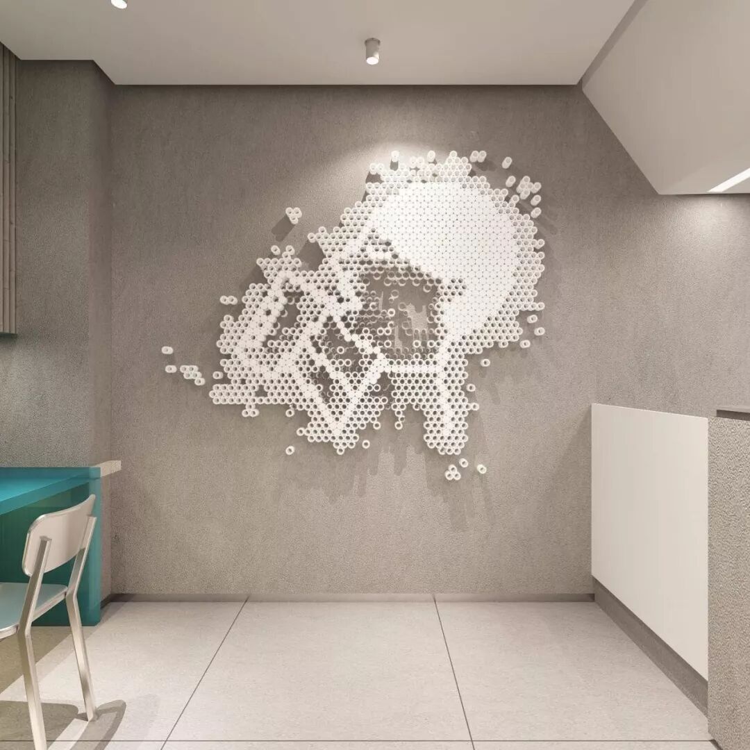 傳統(tǒng)手造陶土杯組成的喜茶LOGO拼圖是空間的亮點(diǎn)所在,也是大家爭(zhēng)相打卡的標(biāo)志之一。